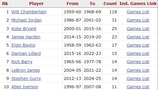 據(jù)統(tǒng)計,這是哈登生涯第24場常規(guī)賽50+,歷史第4多,僅次于張伯倫(118)、喬丹(31)、科比(25)。