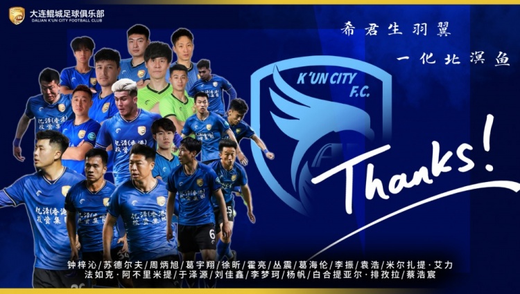 我們在2024賽季攜手創(chuàng)造了不可思議的奇跡,大連鯤城足球俱樂部將會(huì)銘記你們的拼搏和努力贏取的成果,祝愿你們未來一切順利!