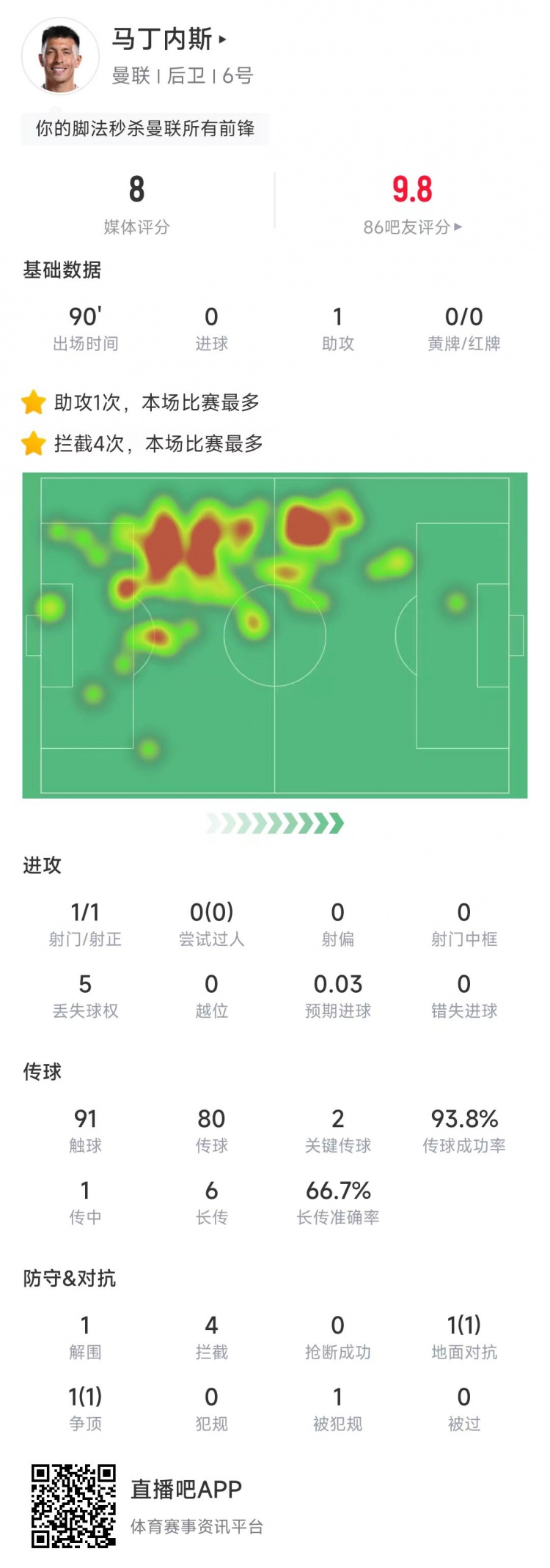 利桑德羅本場數(shù)據(jù):送出絕殺助攻,4次攔截全場最多&獲評8分
