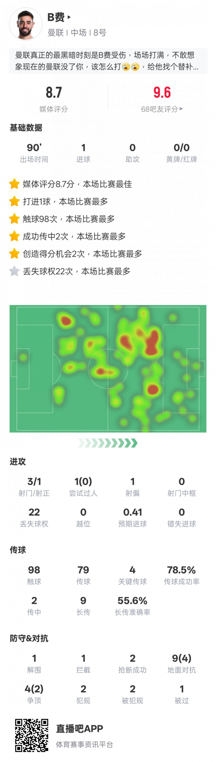 B費(fèi)本場(chǎng)數(shù)據(jù):絕殺+4關(guān)鍵傳球&22次丟失球權(quán),評(píng)分8.7全場(chǎng)最高